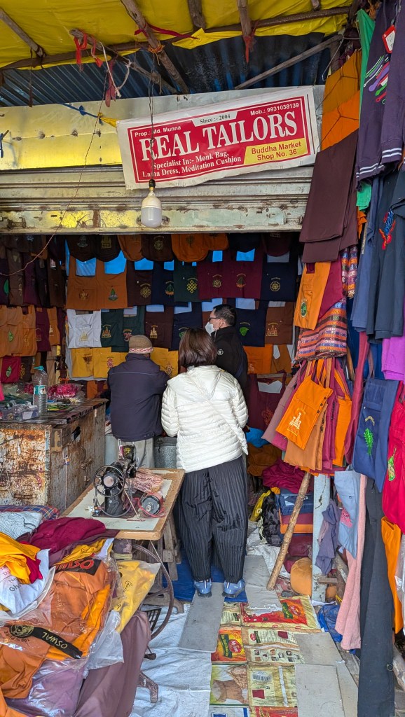 เมื่อจบพิธี คณะไปนั่งดื่มเครื่องดื่มและรับประทานอาหารตรงทางเข้าวัด แต่ผมเห็นพี่ก็กำลังพาพี่ปลาไปซื้อเบาะนั่งสมาธิ (เพราะพี่ปลาต้องเดินทางกลับวันนี้แล้ว) ผมเลยติดตามไปด้วย เดินออกจากวัดเลี้ยวขวาไปประมาณ 300 เมตร ร้านเป็นเพิงอยู่ด้านขวาชื่อ Real Tailors ตรงข้ามกับโรงแรมตึกสีขาวที่ชื่อ Royal Sujata Inn พี่ก็มาอุดหนุนร้านนี้หลายครั้งแล้วเพราะว่าเบาะคุณภาพดี ราคาสมเหตุสมผล ผมก็เลยได้เบาะติดมือกลับมาด้วยเหมือนกัน