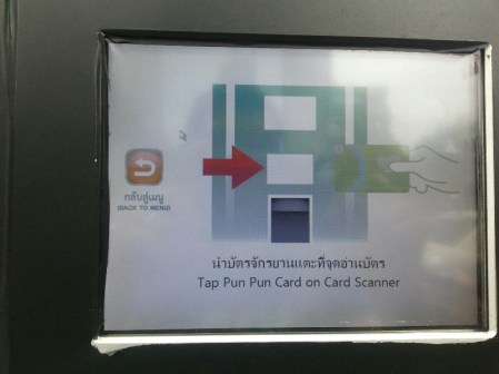 เมื่อกดเลือกแล้ว ให้เอาบัตรแตะตรงพื้นที่สีขาวใต้จอ