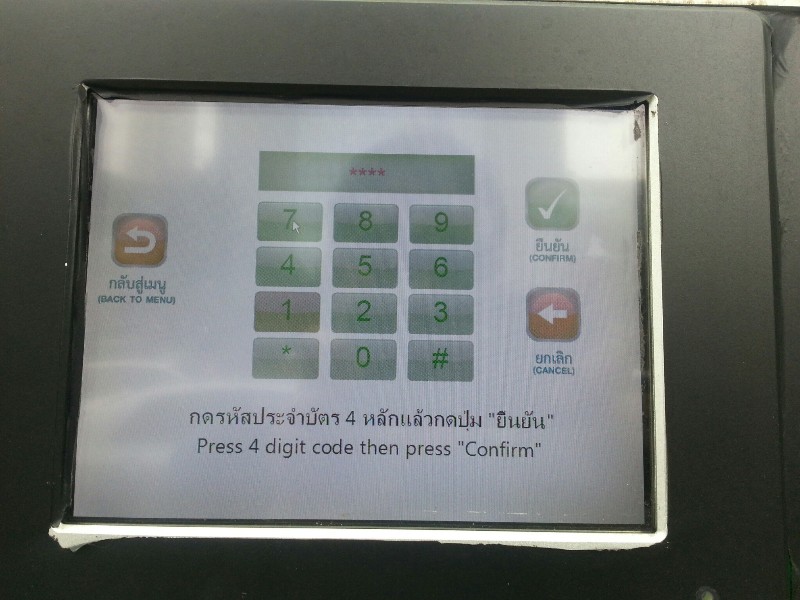 ใส่รหัสประจำตัวสี่หลัก (คล้ายๆ PIN ของบัตร ATM)