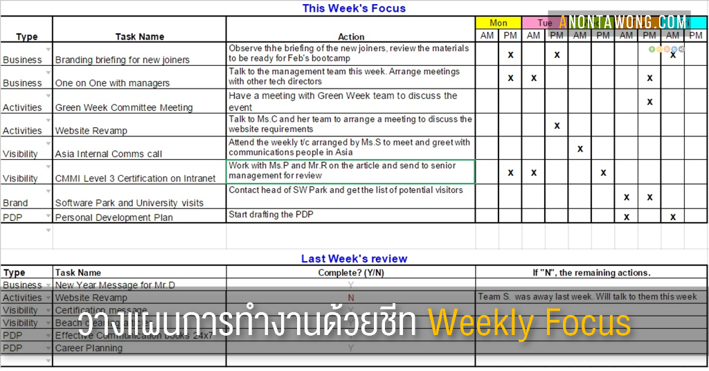 ให้เป็น Weekly Focus แบบนี้ คิดว่า Action จะช่วยติดตามงานง่ายขึ้นแน่ๆ