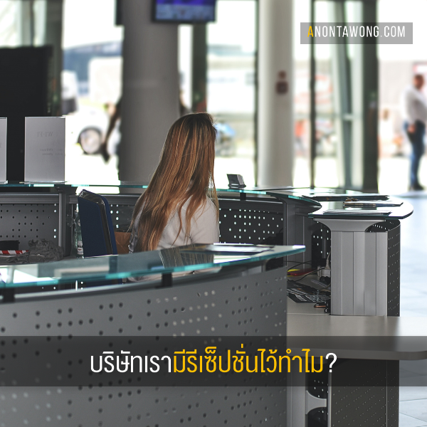 แต่ถ้ามองว่างานรีเซ็ปชั่นคือการสร้าง first impression ที่ดีให้กับคนที่มาติดต่อ มันคือการทำ company branding อย่างหนึ่ง พนักงานต้อนรับก็อาจจะแต่งตั้งตัวเองให้เป็น VP of Reception โดยไม่ต้องรอให้ใครบอก