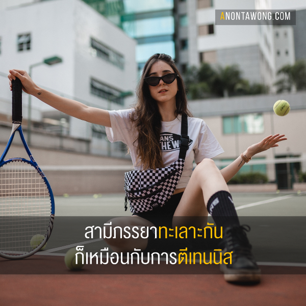 สมมติว่าคู่รักอยู่คอนโด ผู้ชายทำงานจากที่บ้าน ส่วนผู้หญิงไปทำงานที่ออฟฟิศ ผู้หญิงกลับมาจากที่ทำงานเหนื่อยๆ เห็นว่ามีเสื้อผ้ากองใหม่ที่ยังไม่ได้ซัก แถมจานก็ยังไม่ได้ล้าง บทสนทนาแบบตีเทนนิสจะหน้าตาแบบนี้: