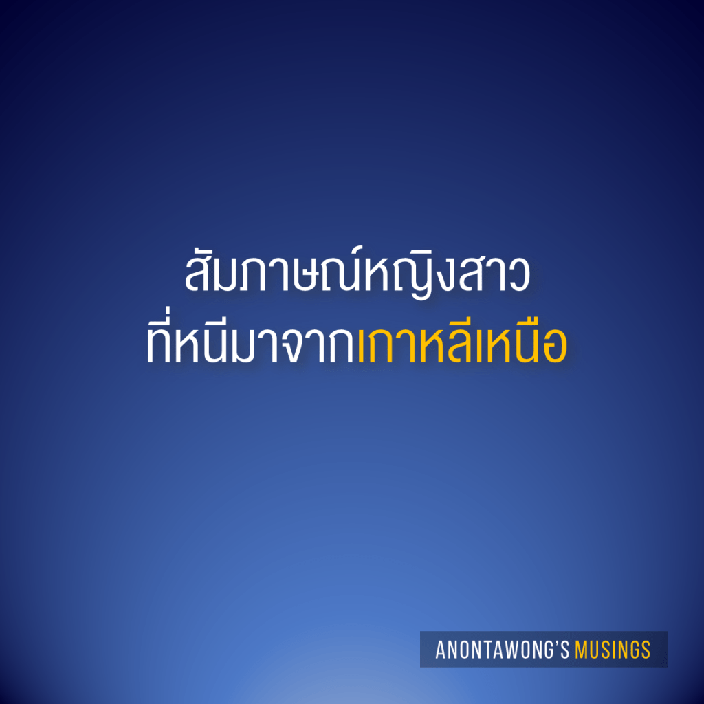 นี่แหละคือประเทศบ้านเกิดของฉัน ฉันเกิดในปี 1993 และการเห็นศพตามท้องถนนก็เป็นเรื่องปกติ นี่คือประเทศที่ไม่เคยสอนให้เรารู้จักคำว่า “รัก” ไม่มีคำศัพท์สำหรับคำว่า “สิทธิมนุษยชน” “ความมีเกียรติ” หรือ “เสรีภาพ” คนในเกาหลีเหนือจึงไม่เคยรู้ตัวว่ากำลังถูกกดขี่ข่มเหง ไม่รู้ว่าตัวเองกำลังตกเป็นทาสอยู่