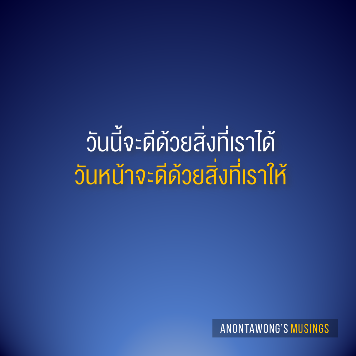 เพราะวันนี้จะดีด้วยสิ่งที่เราได้ และวันหน้าจะดีด้วยสิ่งที่เราให้ครับ