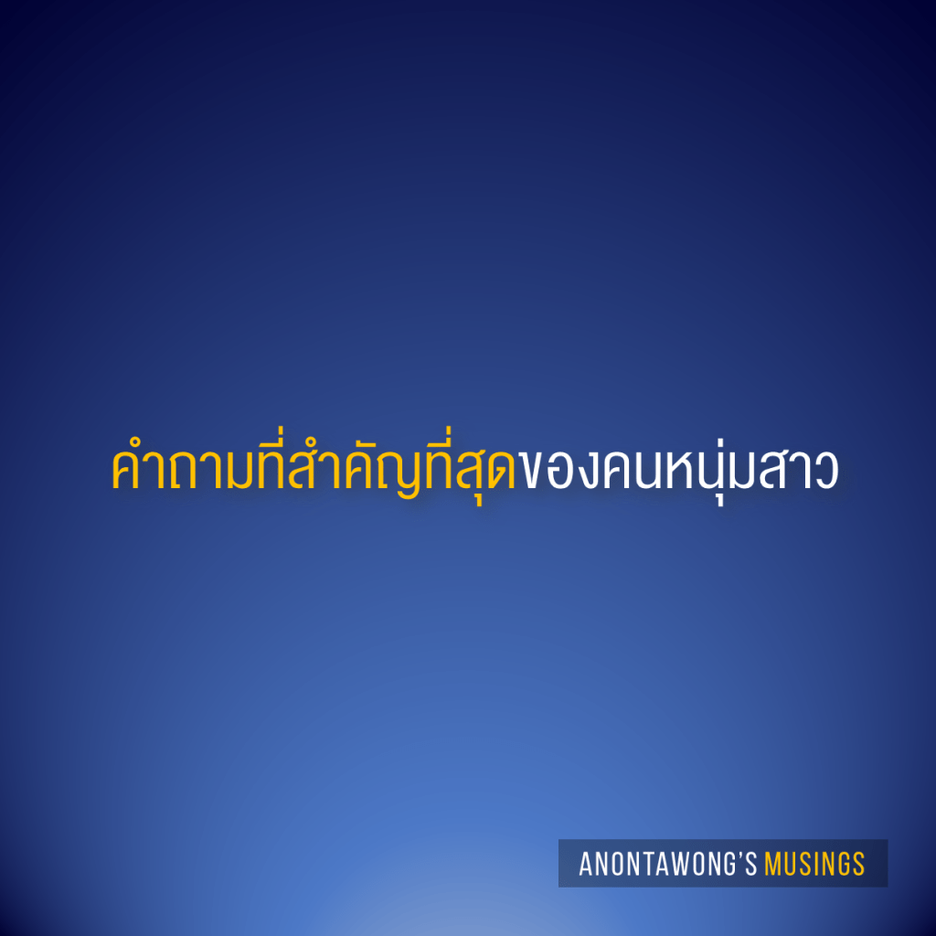 คำถามมันกลางมาก มันไม่ได้ไปถึงแก่นที่ลึกที่สุดว่าตกลงกูเกิดมาเพื่ออะไร อะไรคือสิ่งสำคัญสูงสุดของชีวิตกู กูทำอะไรได้ดีที่สุดในชีวิต ถ้ากูจะตายในวันรุ่งขึ้นกูจะทำอะไรฝากไว้ในโลกนี้ ซึ่งคุณภาพของคำถามต่างกันคุณภาพของคำตอบก็ต่างกัน