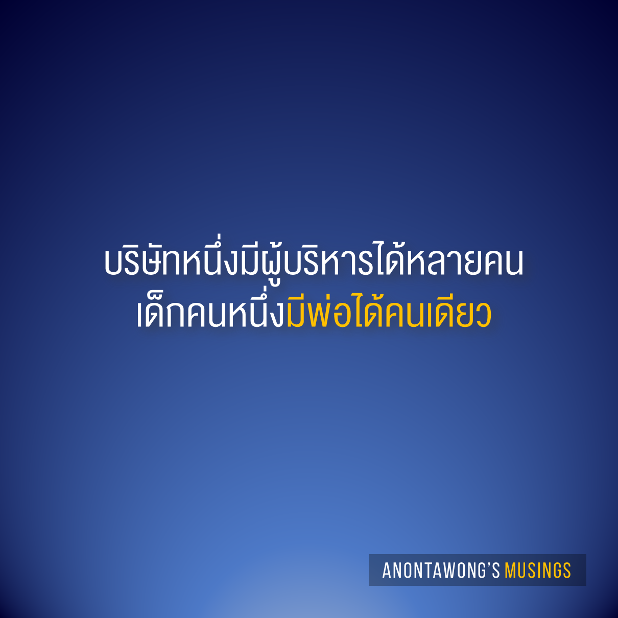 บริษัทหนึ่งมีผู้บริหารได้หลายคน เด็กคนหนึ่งมีพ่อได้คนเดียว