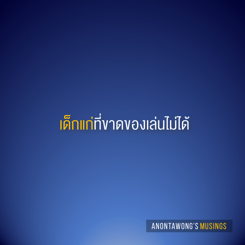 เมื่อเป็นเด็กแก่ที่ขาดของเล่นไม่ได้ เราจึงอยู่ไม่สุข จนบางทีก็ทำของเล่นพังคามือ