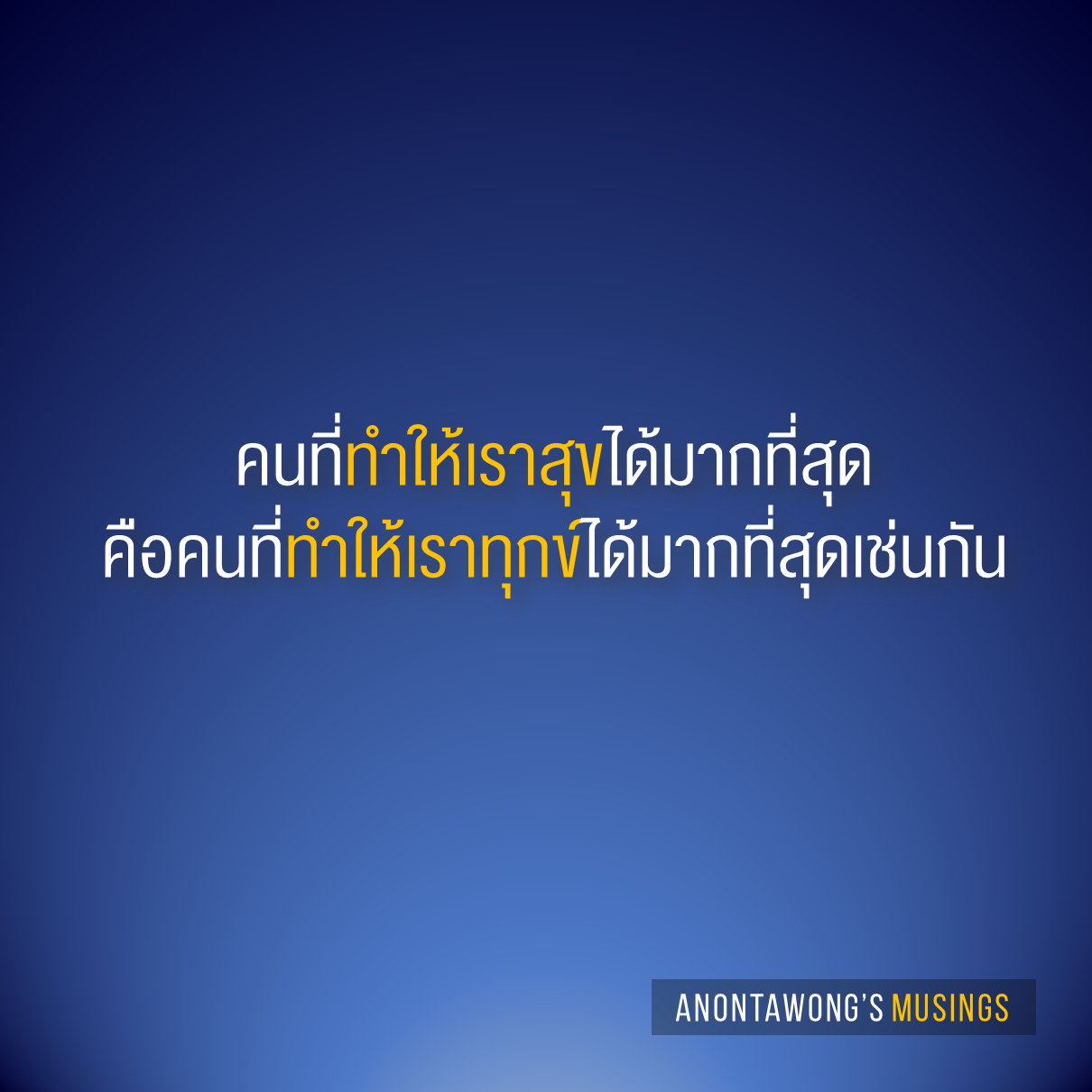 คนที่ทำให้เราสุขได้มากที่สุด คือคนที่ทำให้เราทุกข์ได้มากที่สุดเช่นกันครับ