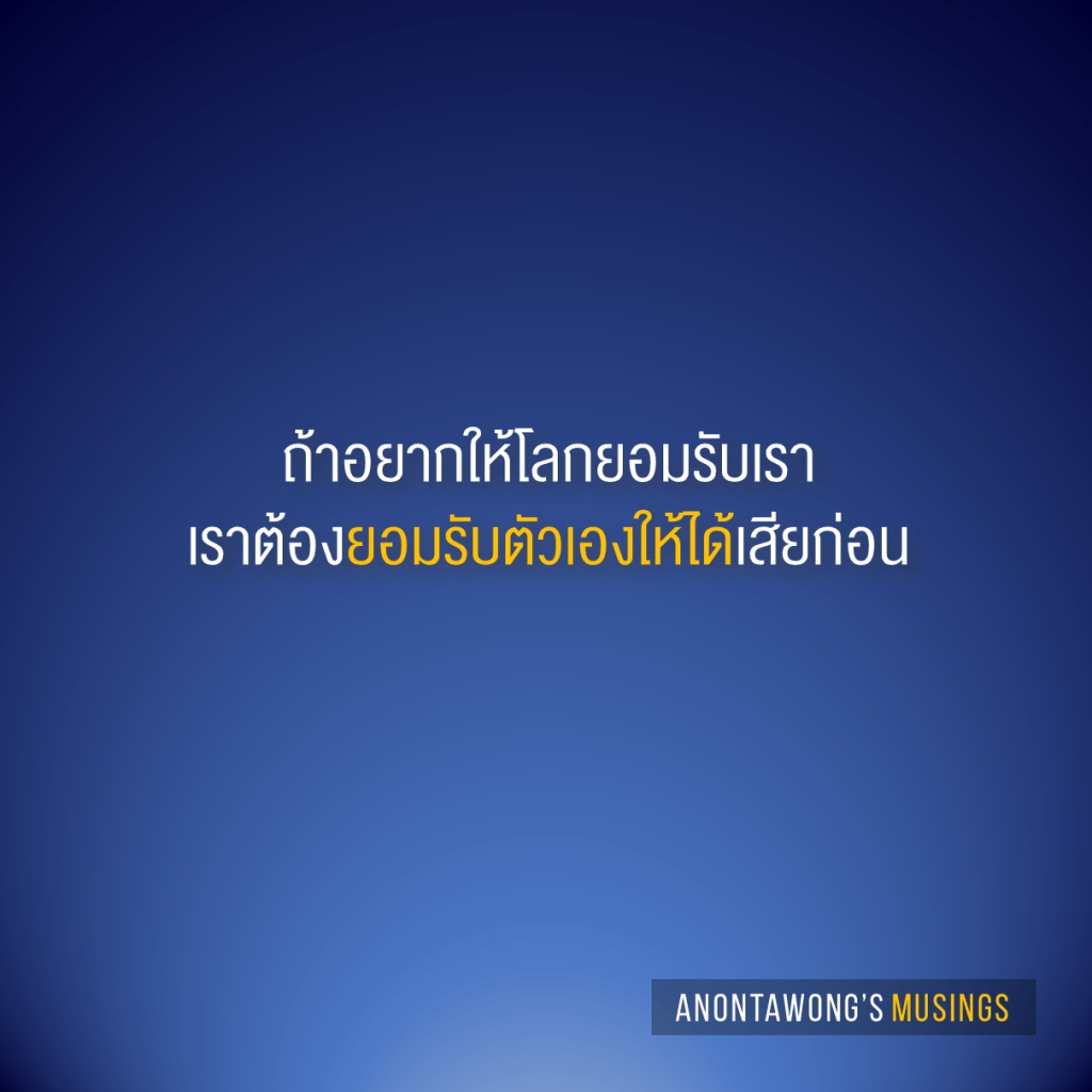 เข้าใจและยอมรับตัวเองให้ได้ ถึงวันนั้นเราจะไม่แสวงหาการยอมรับอีกต่อไป