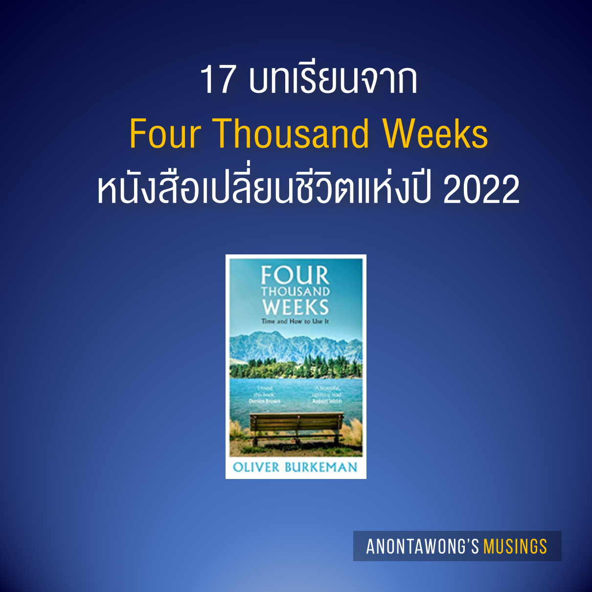 [UPDATE April 2023]: เมื่อปลาย 2022 หนังสือเล่มนี้ได้รับการแปลเป็นไทยโดยสำนักพิมพ์ อมรินทร์ How to ภายใต้ชื่อ “ชีวิตเรามีแค่สี่พันสัปดาห์” แต่ผมคิดว่าสำนวนการแปลยังไม่ค่อยลื่นไหล ใครที่พออ่านภาษาอังกฤษได้ ผมแนะนำว่าให้อ่านฉบับภาษาอังกฤษจะได้อรรถรสมากกว่า หาซื้อได้ที่ Asia Books และ Kinokuniya เลย