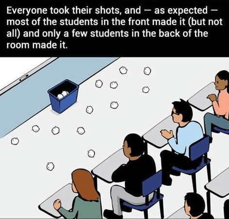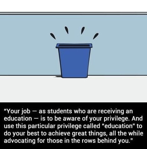 “ยิ่งคุณอยู่ใกล้ถังเท่าไหร่ โอกาสสำเร็จของคุณก็ยิ่งมากขึ้น นี่แหละคือสิ่งที่เรียกว่าอภิสิทธิ์หรือข้อได้เปรียบ น่าคิดมั้ยว่า มีแต่คนที่นั่งอยู่หลังห้องเท่านั้นที่ทักท้วงเรื่องความแฟร์?
