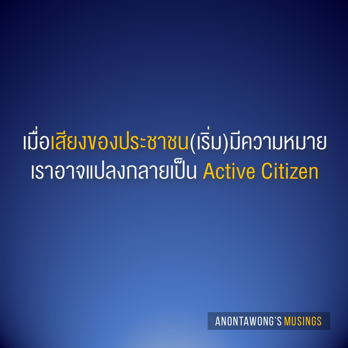เพราะจากนี้ไป เมื่อเสียงของประชาชน(เริ่ม)มีความหมาย พวกเราจะแปลงกลายเป็น Active Citizen