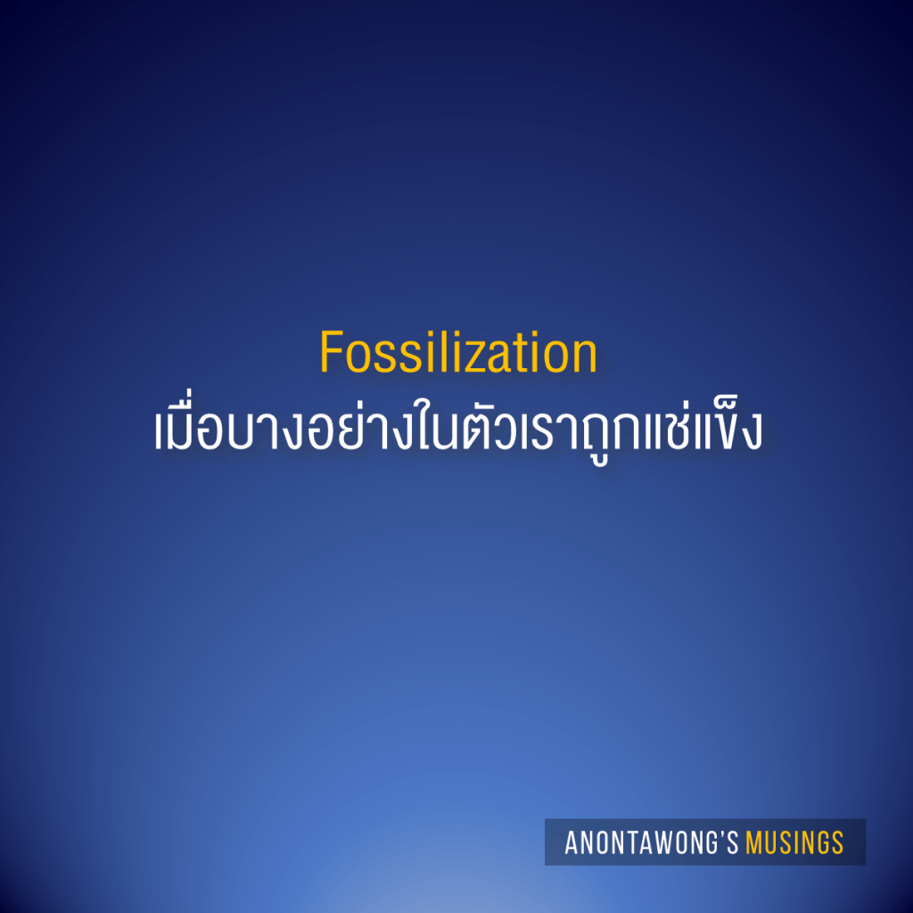 ตอนที่ผมเรียนปริญญาโทด้านภาษาและการสื่อสารที่นิด้า ในหัวข้อการเรียนภาษาที่สอง (Second Language Acquisition – SLA) คำว่าฟอสซิลถูกนำมาใช้ในบริบทที่ผมนึกไม่ถึง
