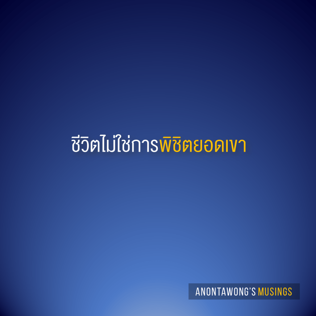 และเมื่อเราบรรลุเป้าหมาย ก็เหมือนการได้ปีนถึงยอดเขา แล้วเราก็มองหายอดเขาลูกถัดไปให้พิชิต