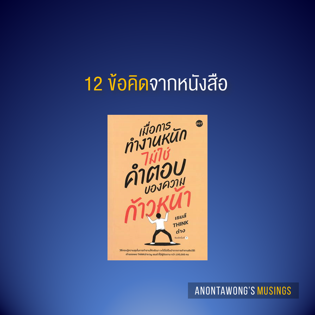 ขอบคุณเนื้อหาจากหนังสือ เมื่อการทำงานหนักไม่ใช่คำตอบของความก้าวหน้า เธมส์ THINKต่าง เขียน สำนักพิมพ์ DOT