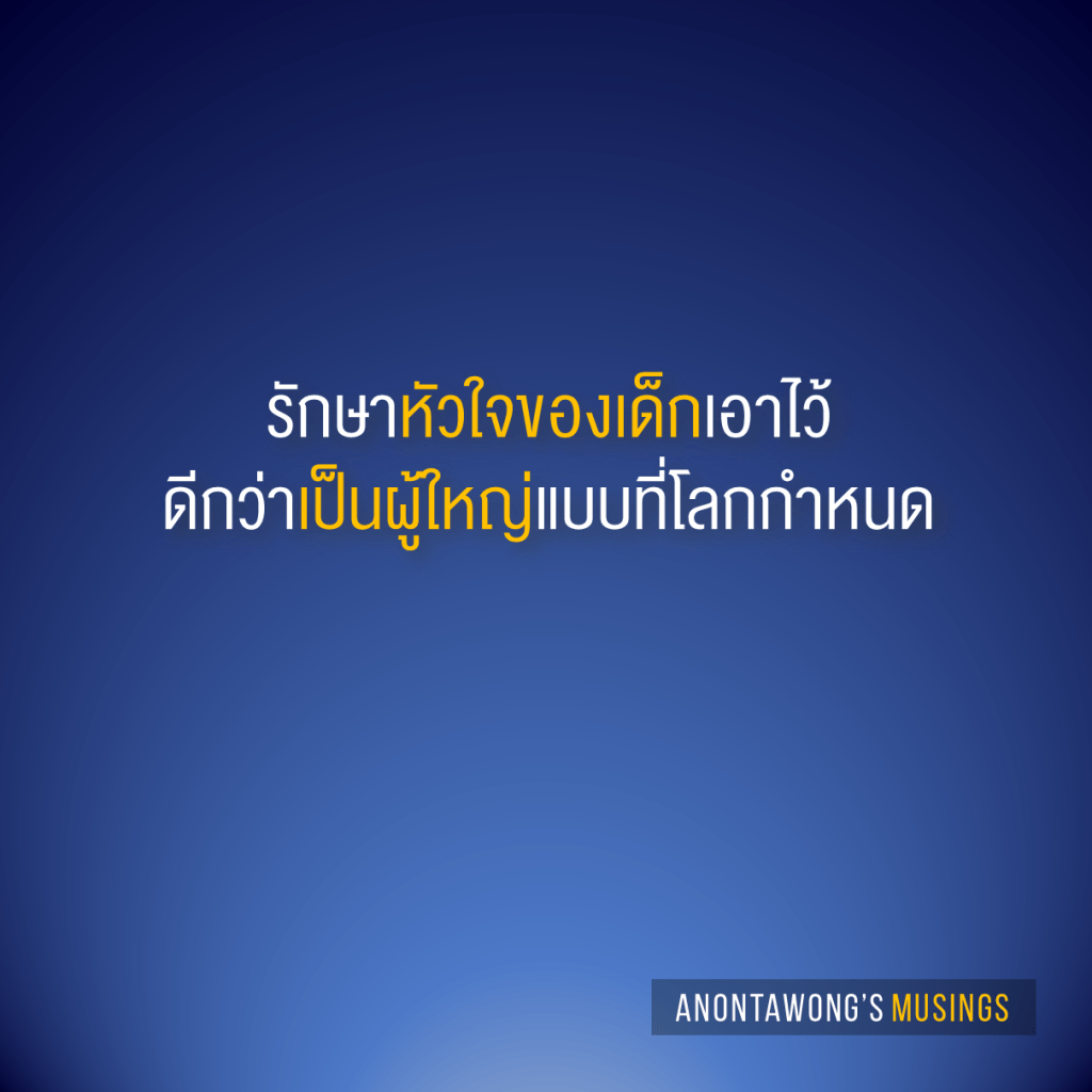 รักษาหัวใจของเด็กเอาไว้ ดีกว่าเป็นผู้ใหญ่แบบที่โลกกำหนดครับ
