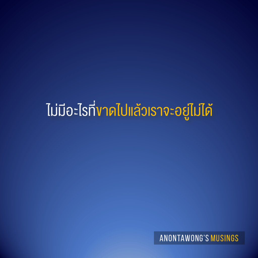 ผมว่าสิ่งหนึ่งที่คนเราควรแสวงหา คือการพึ่งพาสิ่งภายนอกให้น้อยที่สุด