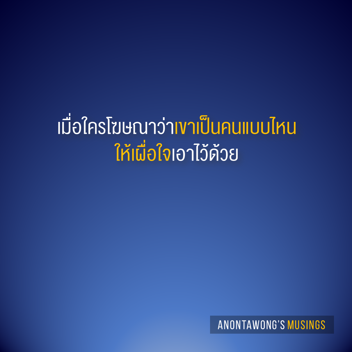 เมื่อใครโฆษณาว่าเขาเป็นคนแบบไหน เราจึงควรเผื่อใจเอาไว้