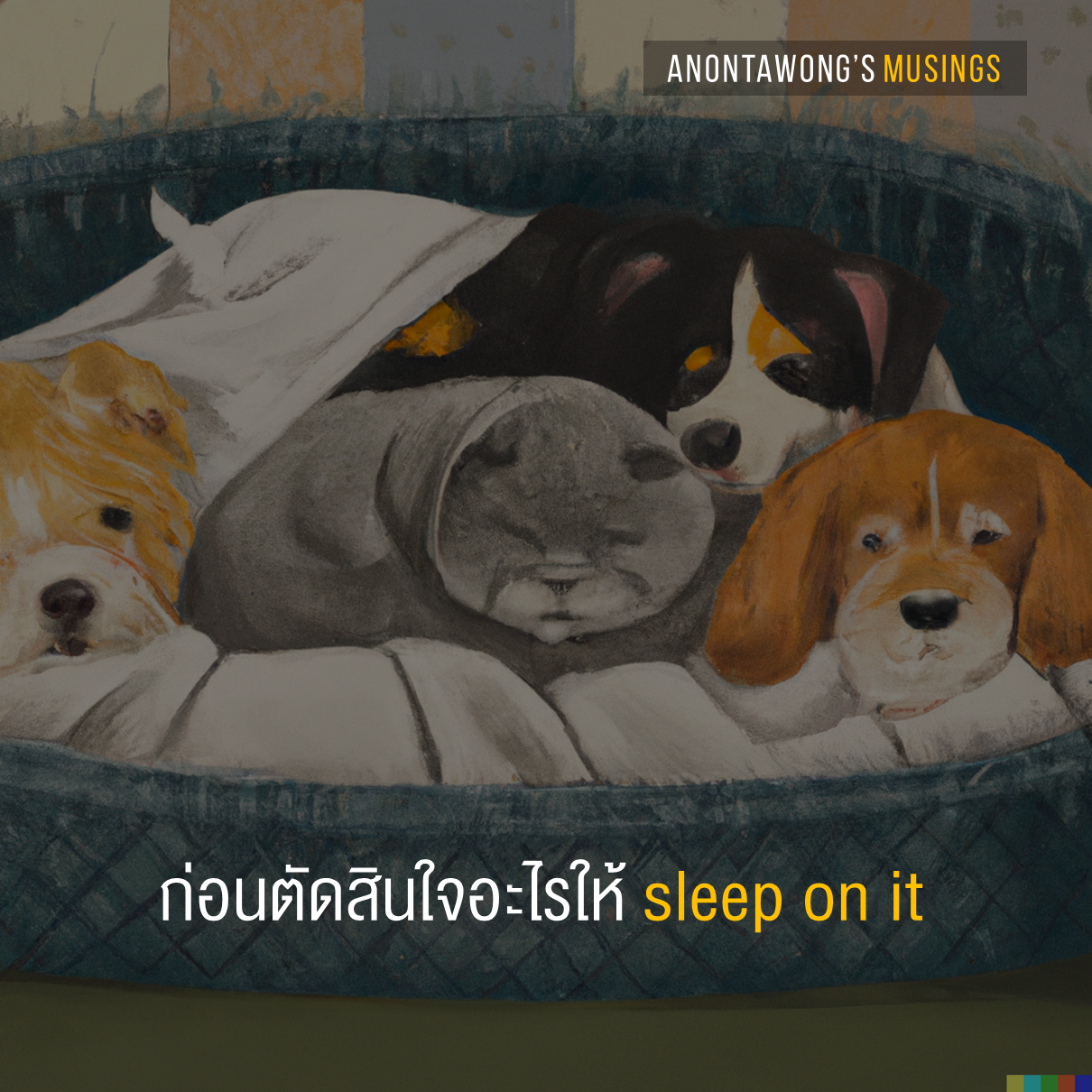 คำว่า sleep on เป็น phrasal verb แปลว่าการทอดเวลาที่จะตัดสินใจเรื่องใดเรื่องหนึ่งจนกว่าจะถึงวันพรุ่งนี้