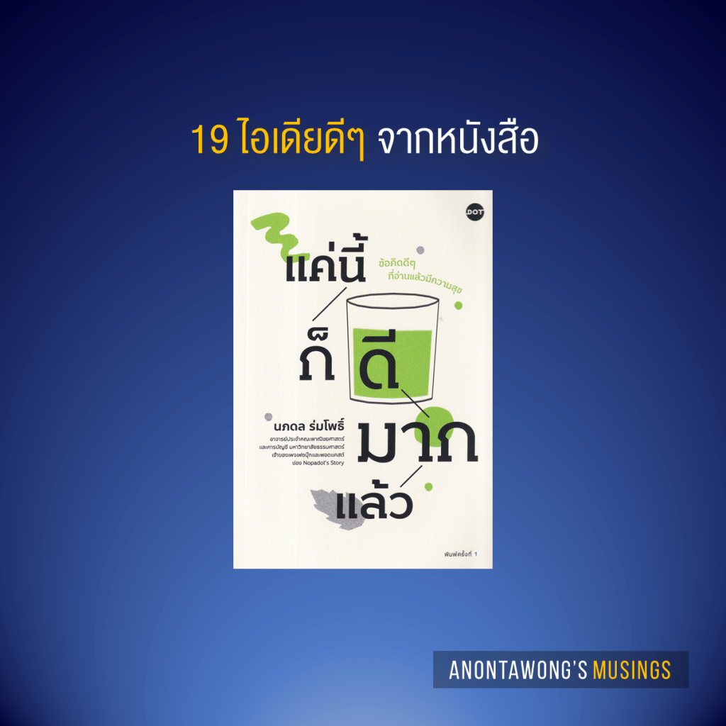 ขอบคุณเนื้อหาจากหนังสือ แค่นี้ก็ดีมากแล้ว นภดล ร่มโพธิ์ เขียน สำนักพิมพ์ DOT