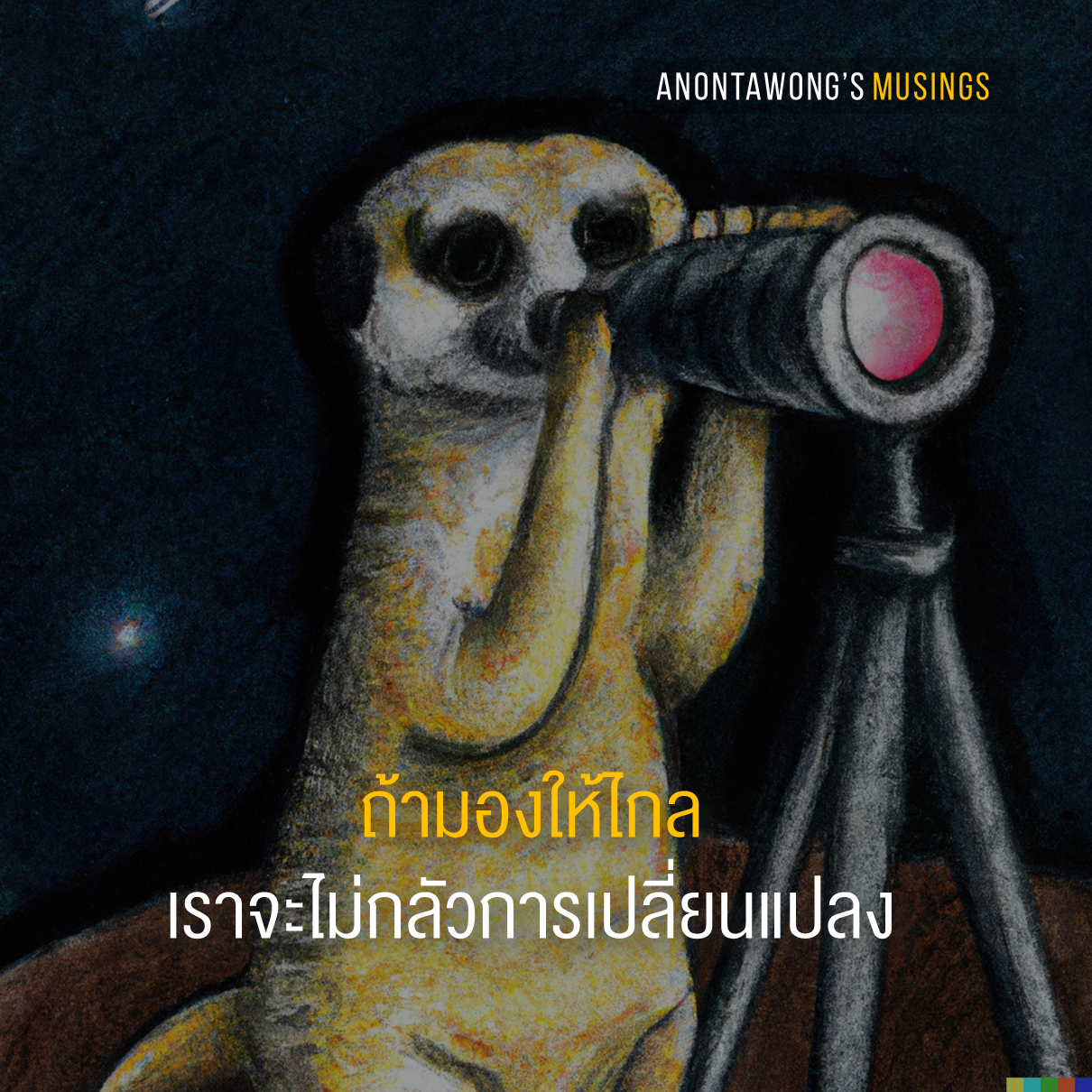 7.เราไม่ได้กลัวความเปลี่ยนแปลง แต่เรากำลังสู้กับอัตตาของตัวเองที่กระซิบข้างหูว่า “คุณประสบความสำเร็จดีอยู่แล้ว ไม่ต้องเปลี่ยนหรอก”…เผชิญหน้ากับสิ่งที่เราไม่รู้ สบตากับสิ่งที่เราไม่เห็นอย่างแท้จริง จนเห็นว่าความจริงมันไม่ได้ยิ่งใหญ่เท่าจินตนาการของเรา กลัวสิ่งใด จงเป็นส่วนหนึ่งของความกลัวนั้น ผมพบว่าความกลัวนี่น่ากลัวกว่าสิ่งที่เรากลัวอีก