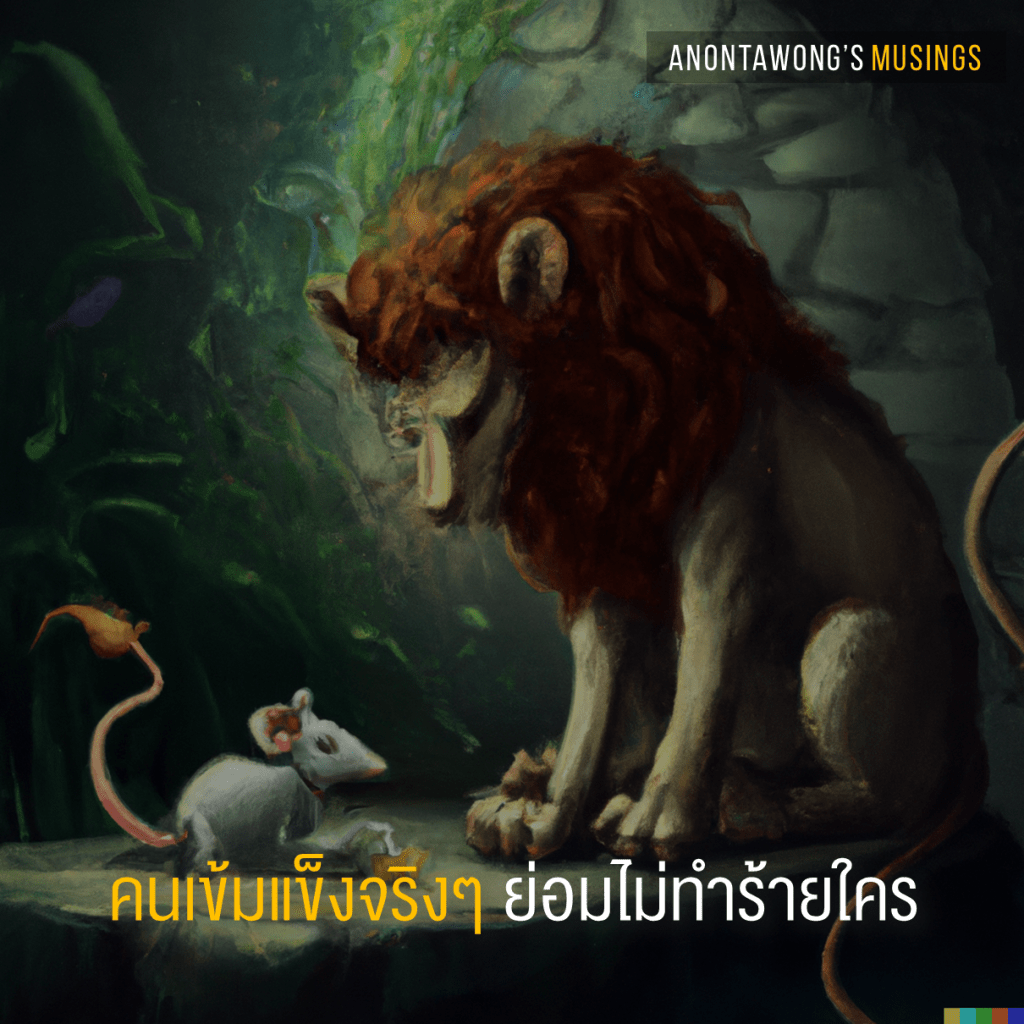 “อย่ากลัวคนอื่นเห็นว่าเราเป็นคนอ่อนแอ อ่อนแอหรือไม่ เจ้าตัวเท่านั้นที่รู้ แต่ผมเสนอความเห็นอย่างนี้ ความอ่อนโยนนั้นดีกว่าความแข็งกร้าวแน่ ความแข็งกร้าวนั้นมันอันตราย สุนัขที่กัดคนนั้นเขาว่าเป็นสุนัขที่ขี้ขลาด มันตกใจก็เลยกัด ดังนั้นคนที่ทำลายคนอื่น จริงๆ เป็นความอ่อนแอ คนเข้มแข็งจริงๆ คือคนที่ไม่ทำลายใคร ให้ตัวเองเจ็บปวดดีกว่าคนอื่นเจ็บปวด”