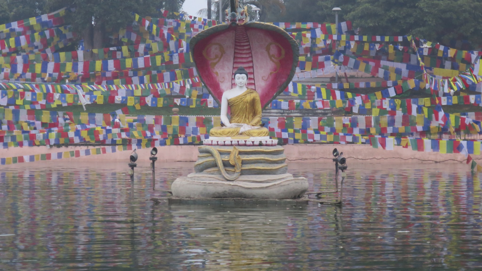 ก่อนออกจากวัด พวกเราเดินไปสระมุจลินท์ขนาดใหญ่ที่มีพระพุทธเจ้าปางนาคปรกอยู่กลางสระ มองไปด้านขวามีสิ่งประดิษฐ์คุ้นตาคือกังหันชัยพัฒนา ถ่ายรูปกันอีกครั้งก่อนจะเดินออกจากวัด กระโดดขึ้นรถริกชอว์มาขึ้นรถบัสกลับเข้าโรงแรม