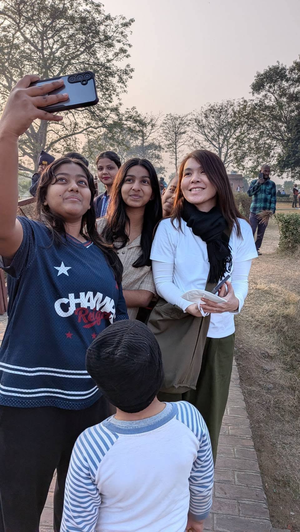 อีกหนึ่งความประทับใจของการมาเยือนที่นี่ ก็คือ “ผึ้ง” ภรรยาของผม มีกลุ่มเด็กนักเรียนผู้หญิงมาขอถ่ายรูปด้วยถึงสองรอบ รอบแรกตอนเดินชมลานอเนกประสงค์ อีกรอบตอนก่อนกลับ
