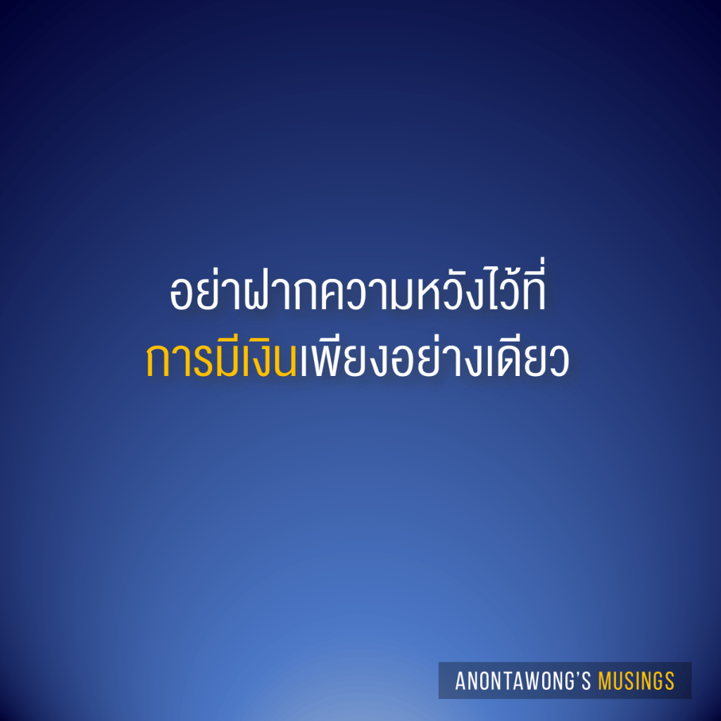 อย่าฝากความหวังไว้ที่การมีเงินเพียงอย่างเดียวครับ