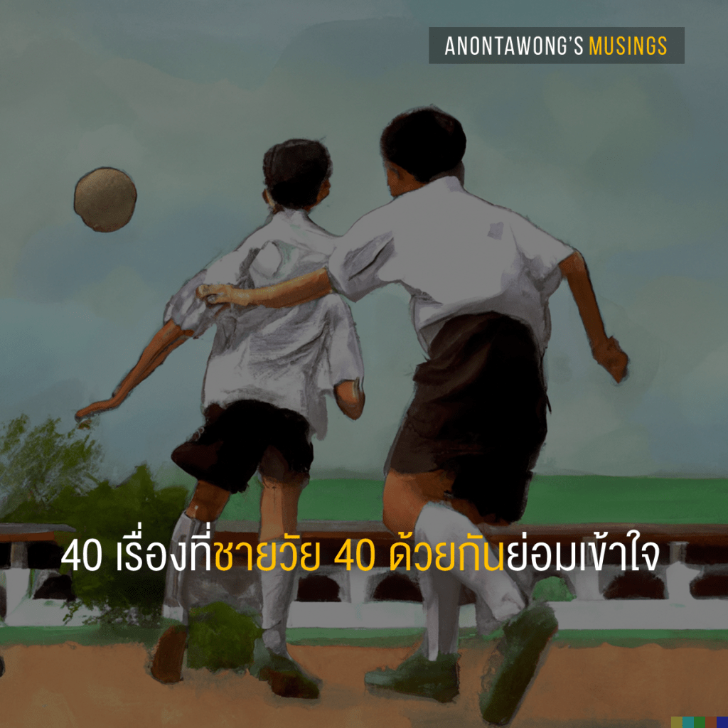 26.ตอนที่เราเลือกเชียร์ทีมฟุตบอล ไม่เห็นมีใครบอกเลยว่าเราจะต้องเชียร์ทีมนั้นมานานขนาดนี้ และน่าจะยาวนานจนชั่วชีวิต (ยังไม่เคยเห็นผู้ชายที่เปลี่ยนทีมบอลที่เชียร์ ต่อให้ทีมของเราจะเล่นแย่แค่ไหนก็ตาม)